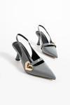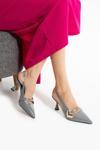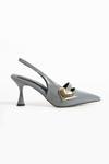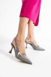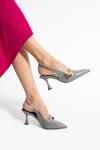 Güllü Shoes Şık Gri Kalp Tokalı Kadın Topuklu Ayakkabı Rugan Görünümlü Vegan Deri Rahat 7Cm Stiletto