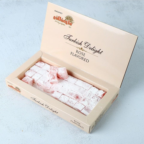 Her parça, geleneksel Türk şekerleme yöntemleri ile güllerin çekici, aromatik özünün ustaca harmanlanmasıyla, Türk mutfak mirasında duyusal bir yolculuk vaat eden bir lezzet yaratıyor. gül Özlü Lokumumuz benzersiz, hoş kokulu bir profile sahiptir. Yüksek kaliteli güllerden elde edilen ekstrakt, bu sevilen çiçeğin tatlı, romantik notalarıyla lezzetimizi aşılıyor ve her lokmayı büyüleyici bir lezzet deneyimine dönüştürüyor. İstanbul'da günlük olarak hazırlanan lokumumuz, nesiller boyu saklanan özgün bir tarif kullanılarak hazırlanmaktadır. geleneksel yöntemleri sürdürmeye olan bağlılığımızla, her parçanın Türk şekerlemesindeki mükemmelliğin bir kanıtı olmasını sağlıyoruz. Ancak kaliteye olan bağlılığımız enfes tatlının ötesine uzanıyor. Her Türk Lokumu, tazeliğini ve aromasını korumak için hava geçirmez ambalajlarda zarif bir şekilde paketlenir ve İstanbul mutfağımızdan kapınıza kadar teslim ediliyormuş gibi hissettirir. Özel günler için mükemmel, düşünceli bir olarak veya kendinize hoş bir ikram olarak mükemmel olan gül Özlü Güllüoğlu Lokumumuz, bir tatlıdan çok daha fazlasıdır; geleneğe dayalı, unutulmaz bir lezzet deneyimidir. Güllüoğlu Lokumlarımızın her parçasında İstanbul'un büyüsünün ve güllerin romantizminin tadını çıkarın. Türk şekerlemesinin kalbine yolculuğunuz burada başlıyor.