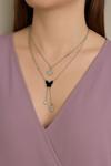 - Gençlerin enerjisini yansıtan, kelebek ve yonca detaylarıyla süslenmiş zirkon taşlı kolye.