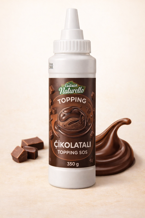Gülşan Naturello Çikolatalı Topping Sos, yoğun çikolata lezzeti ve pratik sıkma şişesiyle tatlı sunumlarını kolayca zenginleştirir. Pastalar, waffle, pankek, dondurma, sütlü tatlılar ve kahve üstü süslemelerde ideal kıvam sunar.