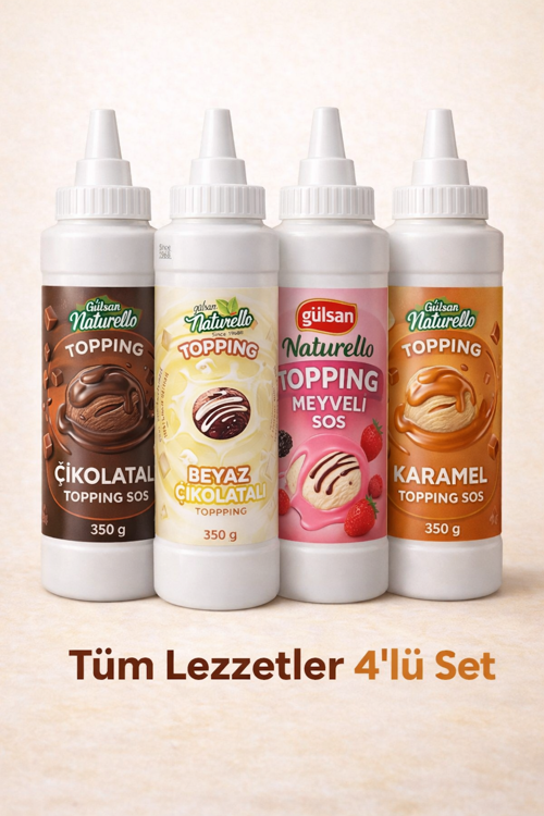 Gülşan Naturello 4’lü Mega Set, en çok tercih edilen dört topping sos çeşidini bir arada sunar. Tatlı, waffle, pankek, pasta ve dondurma sunumlarınız için mükemmel kombinasyon.