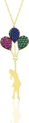 925 ayar gümüş altın yaldızlı kök yakut ,kök zümrüt ve safir taşlı balonlu kız kolye… Kolye Ucu Boyut:3,5 x 1,3 cm Zincir Uzunluk:45 cm