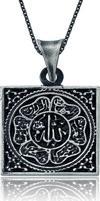 Yüce yaratıcımızın sonsuz varlığını anlatan bu maneviyatı yüksek kolye; doğum günü hediyesi, sevgililer günü hediyesi veya annelere hediye olarak özel günlerde tercih edilebilecek mükemmel bir seçenektir. Kolye; 925 ayar gümüşten imal edilmiştir. Gümüş üzerine rodyum kaplama yapılmıştır. Rodyum kaplama yapılan bayan kolyeler parlaklığını uzun süre muhafaza eder ve oksitlenmesi gecikir. Üzerinde bulunan taşlar zirkondur. Tüm gümüş bayan kolyelerde olduğu gibi gümüş Allah yazılı bayan kolye de el emeği ile üretilmiştir. Gümüş ve değerli taşlar nedeniyle belirtilen ürün ağırlığında ± %10 sapma olabilmektedir.