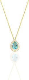 925 ayar gümüş altın yaldızlı akuamarin ve zirkon taşlı pırlanta modeli damla kolye.Montür Boyutu En:8.7 mm Boy:11,6 mm Zincir Uzunluk:45 cm