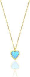 925 ayar gümüş altın yaldızlı mavi opal taşlı kalp kolye. Kalp Boyut:8 mm Zincir Uzunluk:40+5 cm uzatmalı