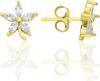 925 ayar gümüş altın yaldızlı mekik kesim zirkon taşlı lotus küpe. Boyut:9,5 mm