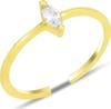 925 ayar gümüş, altın yaldızlı mekik zirkon taşlı alttan ayarlanabilir yüzük. Taş Boyut:6 mm