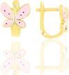 925 Ayar gümüş altın yaldızlı pembe mineli kelebek çocuk küpesi…Boyut:9,20 x 8 mm