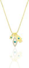 925 ayar gümüş altın yaldızlı turkuaz taşlı mavi gözün koruyucu eli bereket kolye.Aparat Boyut:15 mm Zincir Uzunluk:40+5 cm uzatmalı