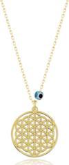 Yaşam Çiçeği Nazar Gözlü Altın; 925 Ayar Gümüş Üzeri 14 Ayar Altın Kaplama, Çap 2 cm, 25 Kuruş Büyüklüğü; Zincir 45 Cm, Hediye Paketinde Gönderilir, Kalitesi Mücevher İşçiliği İle Üretilmiştir.