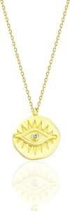 925 ayar gümüş altın yaldızlı zirkon taşlı kadim göz kolye. Uç Boyut:14 mm Zincir Uzunluk:40+5 cm uzatmalı