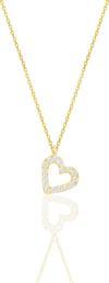 925 ayar gümüş altın yaldızlı zirkon taşlı kalp kolye. Zincir Uzunluk:45 cm Kalp Boyut:9 mm