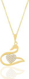 925 ayar gümüş altın yaldızlı zirkon taşlı kalpli kuğu kolye... Montür boyut En:18 mm Boy: 18,7 mm Zincir Uzunluk:45 cm