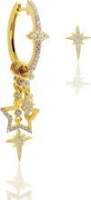 925 ayar gümüş altın yaldızlı zirkon taşlı kutup yıldızı şans küpe.Boyut halka çapı:21 mm sallantılarıyla beraber uzunluğu 48 mm. Kutup yıldızı boyutu:12x8 mm. Not:bir kulakta halka olan küpe, diğer kulakta sadece kutup yıldızı vidali küpe modeli takılır.