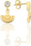 925 ayar gümüş altın yaldızlı zirkon taşlı midye modeli küpe. Boyut:15x9 mm