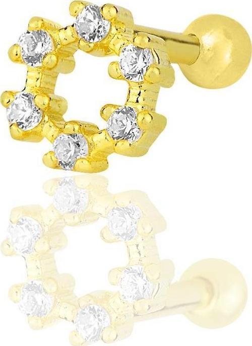 925 ayar gümüş altın yaldızlı zirkon taşlı simit Tragus helix Piercing küpe. Montür Boyut:6,7 mm Bar Kalınlık:1,3 mm
