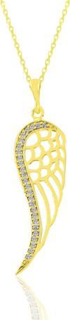 925 ayar gümüş altın yaldızlı zirkon taşlı sol yanım kanat kolye Montür boyut En:10 mm Boy: 32 mm Zincir Uzunluk:45 cm