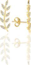 925 ayar gümüş altın yaldızlı zirkon taşlı yaprak modeli küpe.Boyut:20x6 mm