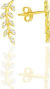 925 ayar gümüş altın yaldızlı zirkon taşlı yaprak küpe.Boyut:16x5 mm
