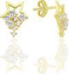 925 ayar gümüş altın yaldızlı zirkon taşlı yıldız yağmuru küpe. Boyut:12x9 mm