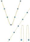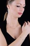 925 Ayar gümüş, altın yaldızlı cam göz nazar kolye, küpe ve bileklik seti. Kolye Üzerinde 9 adet nazar boncuğu bulunmaktadır.Nazar Boyut:4.5 mm Kolye Uzunluk:42+3 cm uzatmalı. Bileklik Uzunluk:16+3 cm uzatmalı