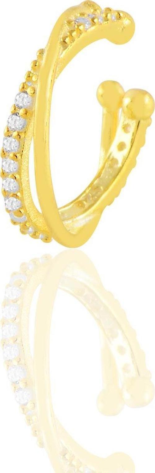 Söğütlü Silver Gümüş altın zirkon taşlı yaldızlı iki sıra görünümlü sıkıştırmalı tekli kıkırdak küpe