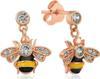 Arı figürlü bayan küpe ile sevginiz, sevdiğiniz kadının teninde hayat bulsun. Bu şık küpe; 925 ayar gümüşten imal edilmiştir. Sizin olduğu kadar sevdiklerinizin de keyifle takacağı gümüş arı figürlü bayan küpe; doğum günü hediyesi, sevgililer günü hediyesi olarak özel günlerde tercih edilebilecek mükemmel bir seçenektir. Gümüş üzerine rose altın kaplama yapılmıştır. Rose altın kaplama yapılan bayan ürünler parlaklığını uzun süre muhafaza eder, gümüşü pembe renge dönüştürür ve oksitlenmesi gecikir. Üzerinde bulunan taşlar zirkon'dur. Tüm gümüş bayan küpelerde olduğu gibi gümüş arı küpe modeli de el emeği ile üretilmiştir. Gümüş ve değerli taşlar nedeniyle belirtilen ürün ağırlığında ± %10 sapma olabilmektedir.