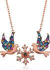 Kadınların boyunlarını ortaya çıkaran ve kıyafetlerini çok daha belirgin hale getiren kolyeler, aksesuarlar arasında vazgeçilmezler arasındadır. Gümüş aşk kuşları kolye yeni yıl, 14 Şubat sevgililer günü ve doğum günü gibi özel günlerde tercih edilebilecek en anlamlı hediye seçeneklerinden biridir. Kaliteli ve şık gümüş kolyeleri satın almak hayal olmaktan çıktı. 925 ayardan üretilen bu şık gümüş kolye üzerine rose altın kaplama yapılmıştır. Rose altın kaplama yapılan gümüş bayan kolyeler parlaklığını uzun süre muhafaza eder ve oksitlenmesi gecikir, gümüşe bakır rengini verir. Tüm kolyelerde olduğu gibi gümüş aşk kuşları kolye modeli de el emeği ile üretilmiştir. Gümüş ve değerli taşlar nedeniyle belirtilen ortalama ürün ağırlığında ± %10 sapma olabilmektedir.