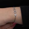 Sevdiklerinize sonsuz aşkı ifade etmenin en güzel en anlamlı yollarından biride bu ay yıldız nazar boncuklu sonsuzluk bilekliktir. Sevdiklerinize hediye edeceğiniz bu özel gümüş bileklik ile ona olan sonsuz sevginizi ifade edebilir sonsuza kadar birlikte olacağınız mesajı verebilirsiniz. 925 ayar gümüşten imal edilmiştir. Gümüş üzerine rodyum kaplama yapılmıştır. Rodyum kaplama yapılan kadın gümüş bileklik modelleri parlaklığını uzun süre muhafaza eder, oksitlenmesi gecikir. Tüm bileklik modellerimiz el emeği ile üretilmiştir. Gümüş ve değerli taşlar nedeniyle belirtilen ortalama ürün ağırlığında ± %10 sapma olabilmektedir.