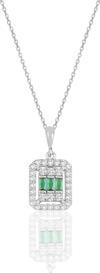 925 ayar gümüş beyaz altın rodyumlu baget kesim kök zümrüt ve zirkon taşlı kolye.. Montür Boyut:11x9 mm Zincir Uzunluk:45 cm