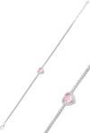 925 ayar gümüş beyaz altın rodyumlu pembe zirkon taşlı pırlanta montürlü kalpli su yolu bileklik. Uzunluk:17+3 cm uzatmalı Kalınlık:2 mm Kalp Boyut:9,6 mm