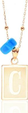 925 ayar gümüş rose C harfi ve turkuaz taşlı top top zincirli kolye..Boyut: harf 18,5x 14 mm zincir 45 cm