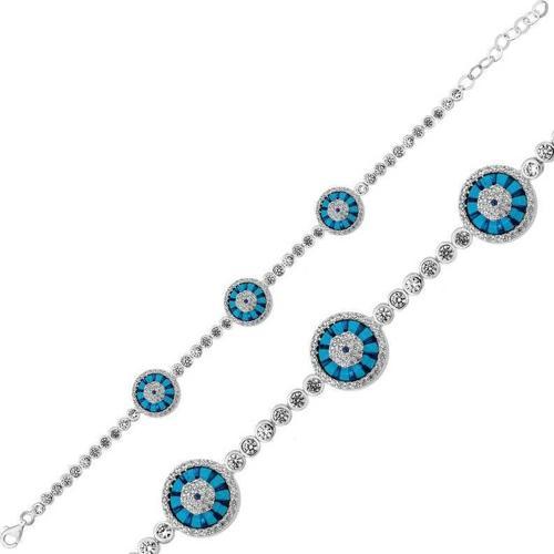 Şıklığınıza şıklık katacak ışıl ışıl gümüş bayan bileklikleri, siz güzel kadınlar için tasarladık. Bu muhteşem bilekliklerle dikkatleri üzerinize çekeceksiniz. Üçlü Camgöz Su Yolu Gümüş Bayan Bileklik, 925 Ayar gümüşten imal edilmiştir. Gümüş üzerine rodyum kaplama yapılmıştır. Rodyum kaplama yapılan gümüş bayan bileklikler parlaklığını uzun süre muhafaza eder, oksitlenmesi geciktirir.Gümüş üçlü camgöz suyolu nazar bileklik; yılbaşı, anneler günü, özel günler ve sevgililer için uygun ve güzel bir hediye seçeneğidir. Ürünlerimize göz atarak tam olarak istediğiniz hediyeleri rahatlıkla bulabilirsiniz. Tüm gümüş bayan bileklik modellerinde olduğu gibi gümüş camgöz üçlü suyolu nazar bileklik modeli de el emeği ile üretilmiştir. Gümüş ve değerli taşlar nedeniyle belirtilen ortalama ürün ağırlığında ± %10 sapma olabilmektedir.