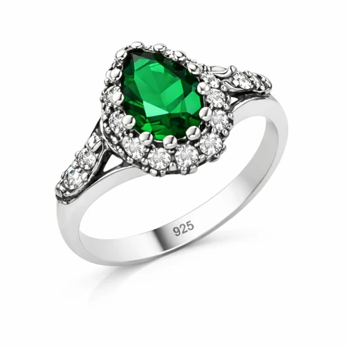 Damla yürek, kalp anlamına gelirken aynı zamanda cesaret ve korkusuzluk anlamı da taşır. Acıma, duygusal yön ve ruhsal bağ anlamı da taşır. Yürek damlası denilen bu şekil, kalbin ikiye ayrılmış parçalarını temsil eder. Aşkı simgeleyen bu yüzük ile aşk hayatınız hareketlenecek. Yeşil ve beyaz zirkon taşlarla bezenen Aşk yüzüğü ile şıklığınızı bir adım daha öne çıkarmaya ne dersiniz. Damla Hürrem Sultan bayan yüzük modeli 925 ayar gümüşten imal edilmiştir. Gümüş üzerine oksit kaplama yapılmıştır. Oksit kaplama yapılan gümüş bayan yüzükleri otantik bir görünüme kavuşur, kararması gecikir. Yüzük üzerinde bulunan taşlar zirkondur. Gümüş bayan yüzüklerin tamamı el el emeği ile üretilmiştir. Gümüş ve değerli taşlar nedeniyle belirtilen ortalama ürün ağırlığında ± %10 sapma olabilmektedir.