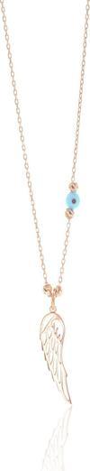 925 ayar gümüş rose dorica toplu nazar boncuklu kanat kolye…Boyut:kanat :24x8 mm uzunluk:40+5 cm