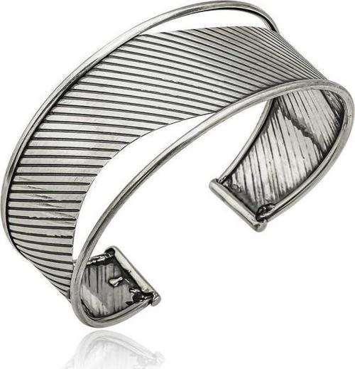 Gümüş Eskitme Desenli Bayan Bilezik