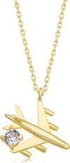 Stil Love Gümüş Gold Tek Taşlı Uçak Kadın Kolye SL2044