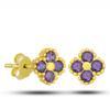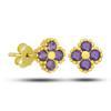 Gümüş Gold Yonca Çivili Mor Taşlı Çocuk Küpe