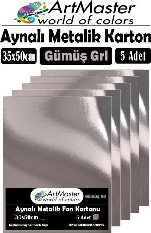 Ürün Adı: Gümüş Gri Renkli 35x50 Metalik Aynalı Fon Kartonu 5 Adet 1 Paket ArtMaster Metalik Aynalı Fon Kartonu