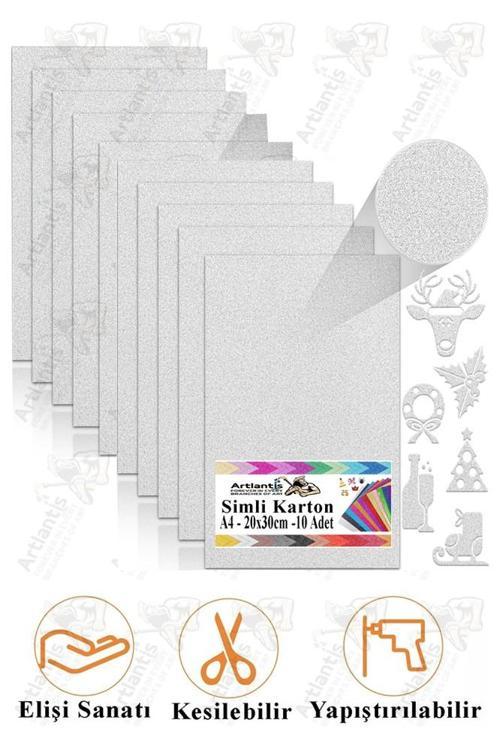 Artlantis Gümüş Gri Simli Karton A4 20x30 cm 10 lu 1 Paket Simli Fon Kartonu Parıltılı Kağıt Anasınıfı Kreş Etkinlik Proje