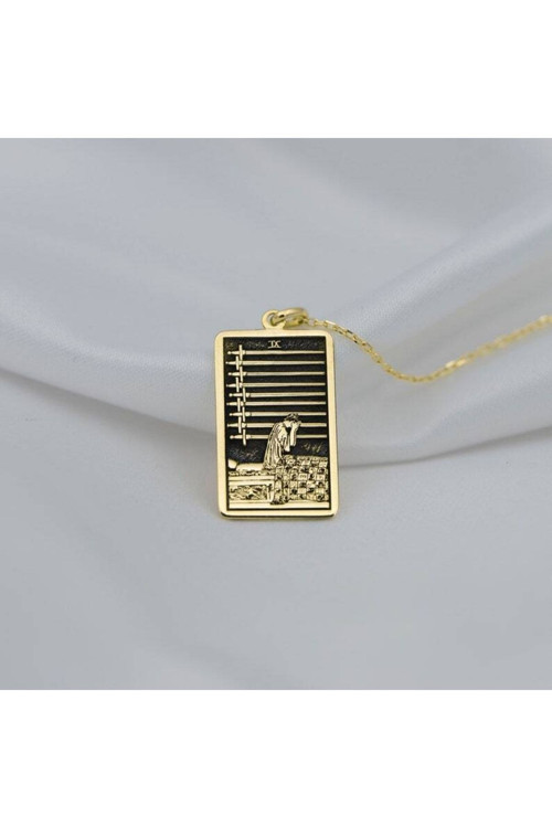 Gümüş Has Altın Kaplama Tarot (Nine Of Swords) Dokuz Kılıç 925 K Kolye