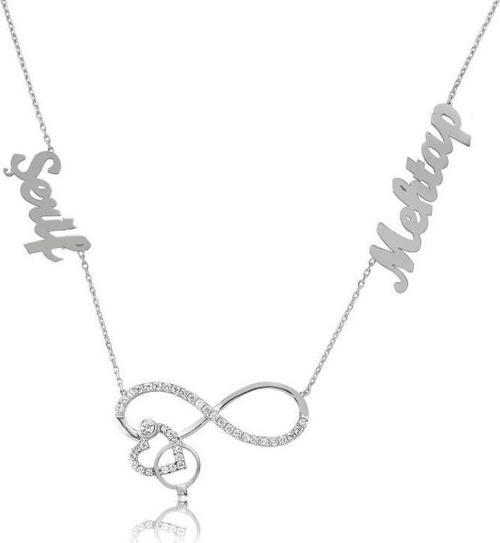 Gümüş İsimli Kalpli Sonsuzluk Bayan Kolye