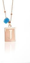 925 ayar gümüş rose J harfi ve turkuaz taşlı top top zincirli kolye..Boyut: harf 18,5x 14 mm zincir 45 cm
