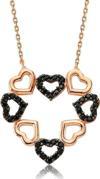 Gümüş Kalpli Aşk Bayan KolyeKalp deseniyle aşkı ifade eden bu kolye ile sevginiz, sevdiğiniz kadının teninde hayat bulsun. Genç sevgililerin ve kendini genç hissedenlerin özel günlerde seçebileceği bu kalpli bayan kolye ile sevdiğinizin boynunu aşkla süsleyin. Sizin olduğu kadar sevdiklerinizin de keyifle takacağı kalpli kolye sevdiğinize en güzel hediyelerden biri olacaktır. Kalpli aşk bayan kolye 925 ayar gümüşten imal edilmiştir. Gümüş üzerine rose kaplama yapılmıştır. Rose kaplama yapılan gümüş bayan kalpli aşk kolyeler parlaklığını uzun süre muhafaza eder ve oksitlenmesi gecikir. Kolye üzerinde bulunan siyah taşlar zirkondur. Gümüş olan zincir boyu ortalama 45 cm'dir. Tüm bayan kolyelerde olduğu gibi gümüş kalpli aşk bayan kolye de el emeği ile üretilmiştir. Gümüş ve değerli taşlar nedeniyle belirtilen ortalama ürün ağırlığında ± %10 sapma olabilmektedir.
