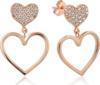 Kalp deseniyle aşkı ifade eden kalpli bayan küpe ile sevginiz, sevdiğiniz kadının teninde hayat bulsun. Bu şık küpe modeli 925 ayar gümüşten imal edilmiştir. Sizin olduğu kadar sevdiklerinizin de keyifle takacağı gümüş kalpli bayan küpe; doğum günü hediyesi, sevgililer günü hediyesi veya annelere hediye olarak özel günlerde tercih edilebilecek mükemmel bir seçenektir. Gümüş üzerine rose altın kaplama yapılmıştır. Rose altın kaplama yapılan bayan küpe modelleri parlaklığını uzun süre muhafaza eder, gümüşü pembe renge dönüştürür ve oksitlenmesi gecikir. Üzerinde bulunan taşlar zirkon'dur. Tüm gümüş bayan küpelerde olduğu gibi gümüş kalpli bayan küpe de el emeği ile üretilmiştir. Gümüş ve değerli taşlar nedeniyle belirtilen ortalama ürün ağırlığında ± %10 sapma olabilmektedir.
