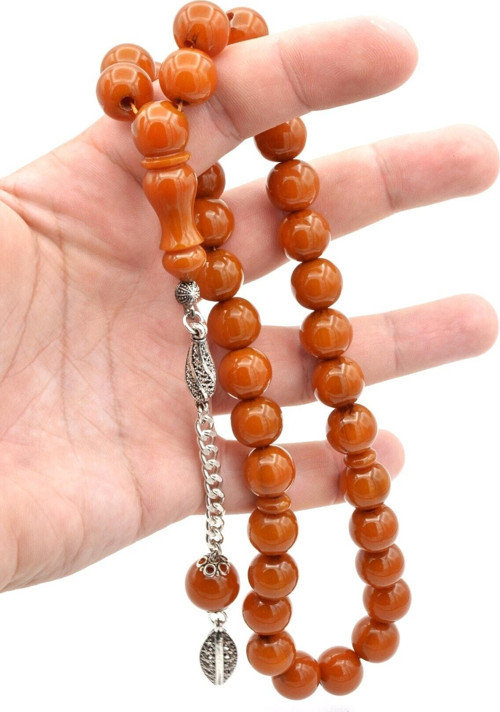 USTA İŞİ KÜRE KESİM SIKMA KEHRİBAR TESBİH GÜMÜŞ KAPLAMA PÜSKÜLLÜ GÜNLÜK ÇEKİME UYGUNDUR ELDE YAĞ GİBİ KAYAR TANE EBADI: 12*13 MM İMAME BOY: 3.8 CM TOPLAM BOY: 37 CM Ürünlerimiz doğal olduğu için renk tonlarında küçük farklılıklar olabilir.