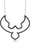 Klasik takılardan sıkılmış, enteresan ve orjinal aksesuar sevenler için tasarlanmış olan kara kartal bayan kolye 925 ayar gümüşten imal edilmiştir. Spor ve farklı olmayı sevenlerin tercih edebileceği bu özel tasarım bayan kolye hediye için de uygun bir seçim olacaktır. Gümüş üzerine rodyum kaplama yapılmıştır. Rodyum kaplama yapılan gümüş bayan kolye modelleri parlaklığını uzun süre muhafaza eder ve oksitlenmesi gecikir. Kolye üzerinde bulunan siyah taşlar zirkondur. Gümüş olan zincir boyu ortalama 45 cm'dir. Gümüş kara kartal bayan kolye diğer gümüş bayan kolye modellerinde olduğu gibi el emeği ile üretilmiştir. Gümüş ve değerli taşlar nedeniyle belirtilen ürün ağırlığında ± %10 sapma olabilmektedir.