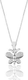 925 ayar gümüş rodyumlu zirkon taşlı kelebek modeli ikili set.Boyut: kolye:11x12 mm küpe:10x10 mm zincir uzunluğı 45 cm