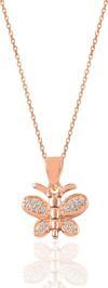 925 ayar gümüş rose zirkon taşlı kelebek modeli kolye.Boyut: kolye:11x12 mm zincir uzunluğı 45 cm