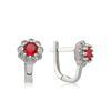 Gümüş Kırmızı Çiçek Desenli Yuvarlak J Kadın Küpe